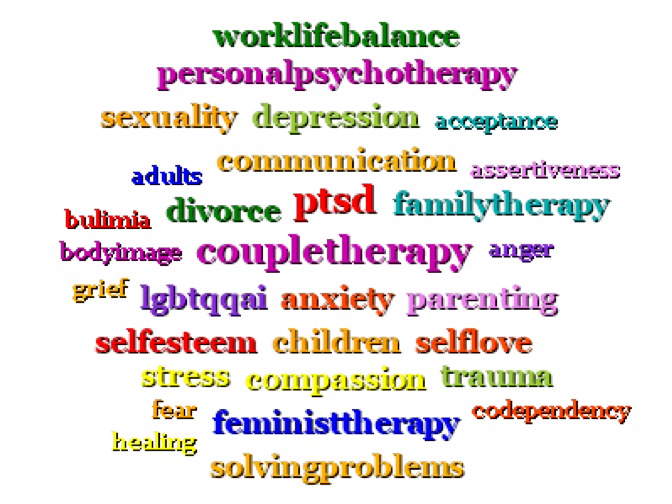 Call to consult about personal and couple therapy, pre-commitment counseling; family therapy and help with parenting skills; separation and divorce; loss, grieving; disappointments, regrets; life transitions; sexual abuse, trauma and PTSD; shame, self-doubt; effects of addictions and co-dependency on self-esteem and family life; and help for patients and family members managing bi-polar depression, hospitalizations, anxiety and eating disorders.